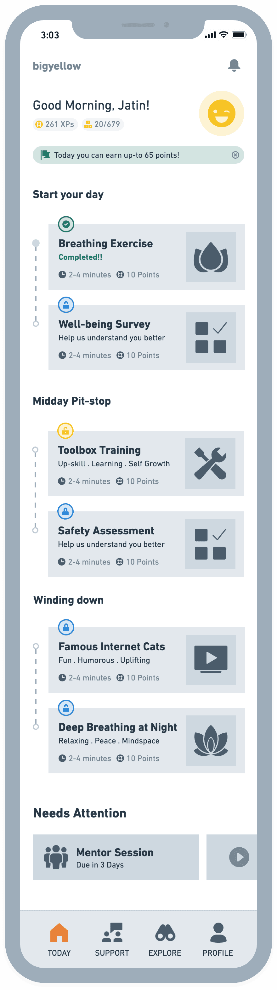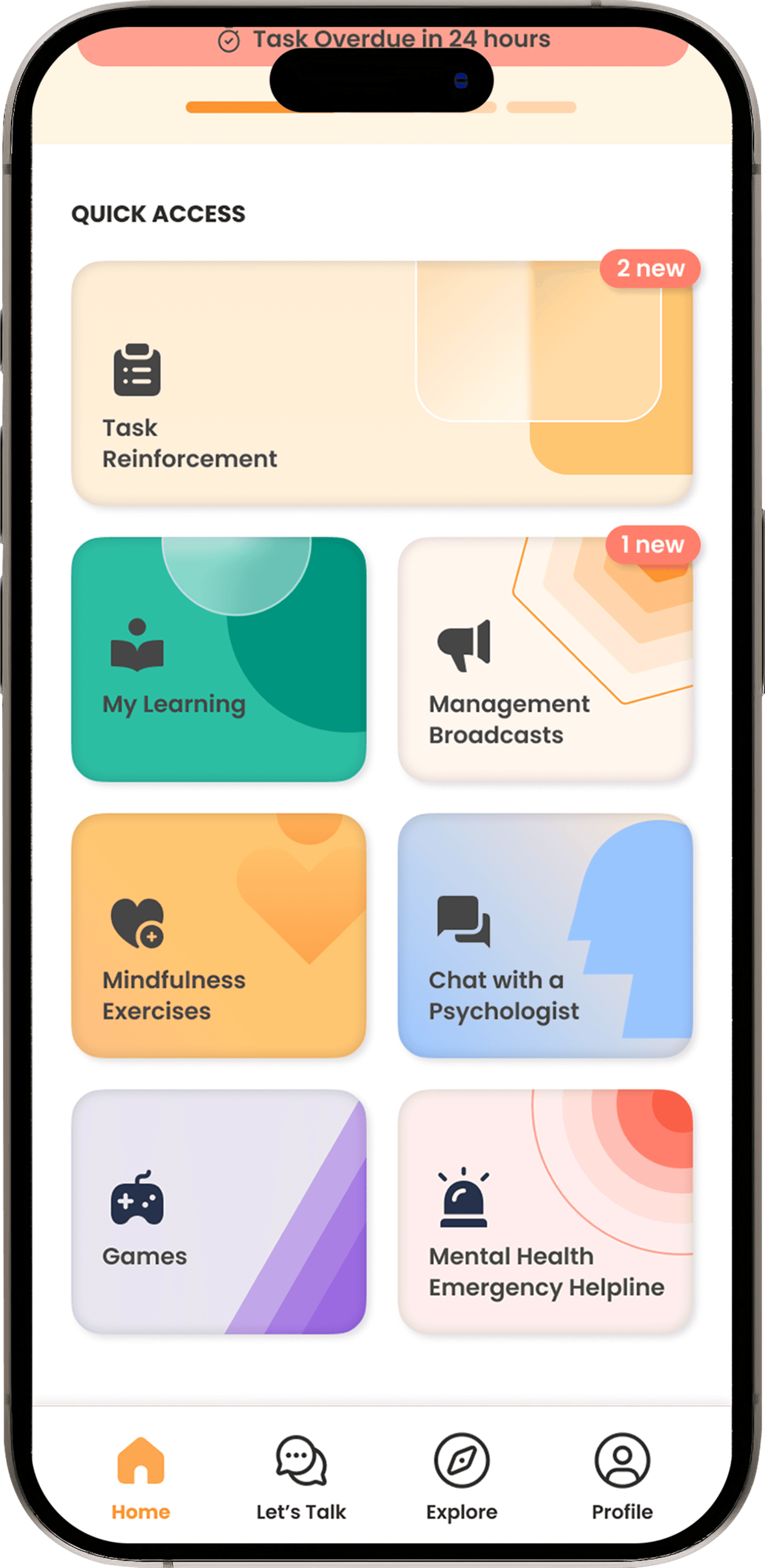 The homepage is the most visited, most judged and most abandoned screen in any app. For a frontline workforce that opens the app between shifts, in low connectivity and limited time - it had to do a lot with very little. The opportunity was to design a space that felt personal, purposeful and worth coming back to. Not just a dashboard. A daily anchor.